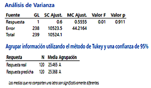 Figura 17. Resultados ANOVA y método de Tukey
