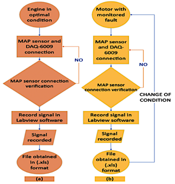 Figure 4. Flowchart for the sampling process: (a) engine under optimal conditions, (b) engine with induced fault