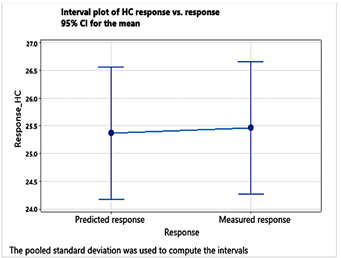 Figure 16. Interval plot comparing measured HC values and CNN predictions
