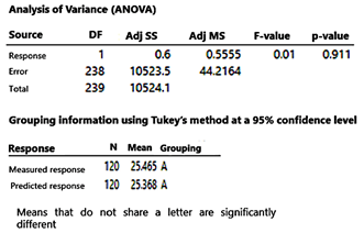 Additionally, the analysis of variance (ANOVA) yielded a p-value of 0.911, which supports the consistency and accuracy of the developed model.