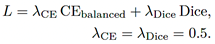 Semantic classes are mutually exclusive, and the final prediction head uses a 22-way softmax. The primary training objective combines a class-balanced Cross- Entropy loss with a soft Dice loss, see equation (1):