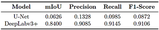 Table 3. Global performance comparison of U-Net and DeepLabv3+ on SYNTHUA-DT (test set)