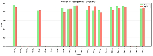 Figure 4. DeepLabv3+: precision and recall per class. |