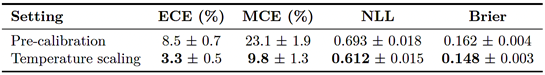 DeepLabv3+ exhibits markedly better calibration, although some overconfidence persists at high confidence, as shown in Figure 7b. Table 8 reports calibration metrics before and after temperature scaling. |