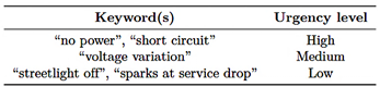 Table 2. Urgency-level assignment for electrical complaints in CNEL EP