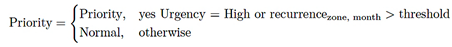 To enhance model predictive performance and define a classification label consistent with the operational reality of electrical complaints, the original dataset was transformed to construct the target variable Priority. This variable was defined using two analytical criteria derived from the data: urgency and recurrence by zone and month. |