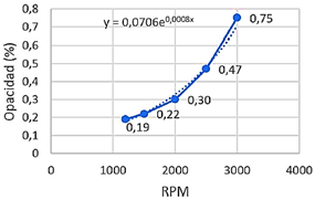 Palabras clave: biodiésel, B15, diésel fósil, higuerilla, opacidad, RPM.
